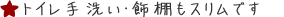 入口の導線をできるだけさえぎらないように、手洗い器は壁からの出っ張りが少ない、埋込設置タイプを採用しました。 |